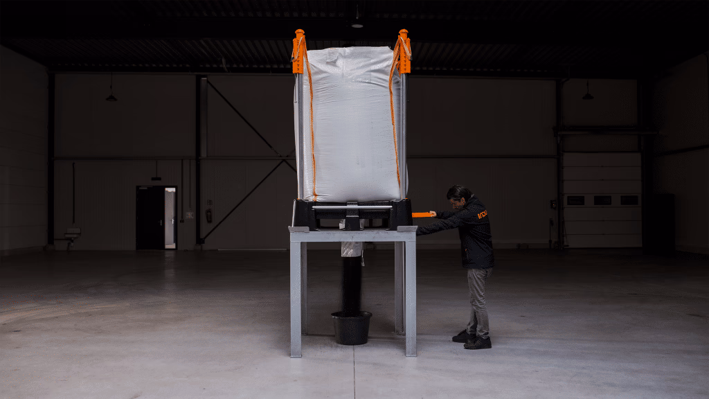 Depending on the material, a jumbo bag flows with a ‘free-flow’ or can, for example, form a bridge. Materials such as plastic granules, coffee beans, nuts, gravel and pet food generally flow quite easily, while powders such as chalk, ground coffee and pigments flow more difficultly. The Indus Standard Big Bag Unloading Station is suitable for easy-flowing products. Looking for an alternative to poorly flowing goods? Then get to know the Gericke-Indus Unloading Station.