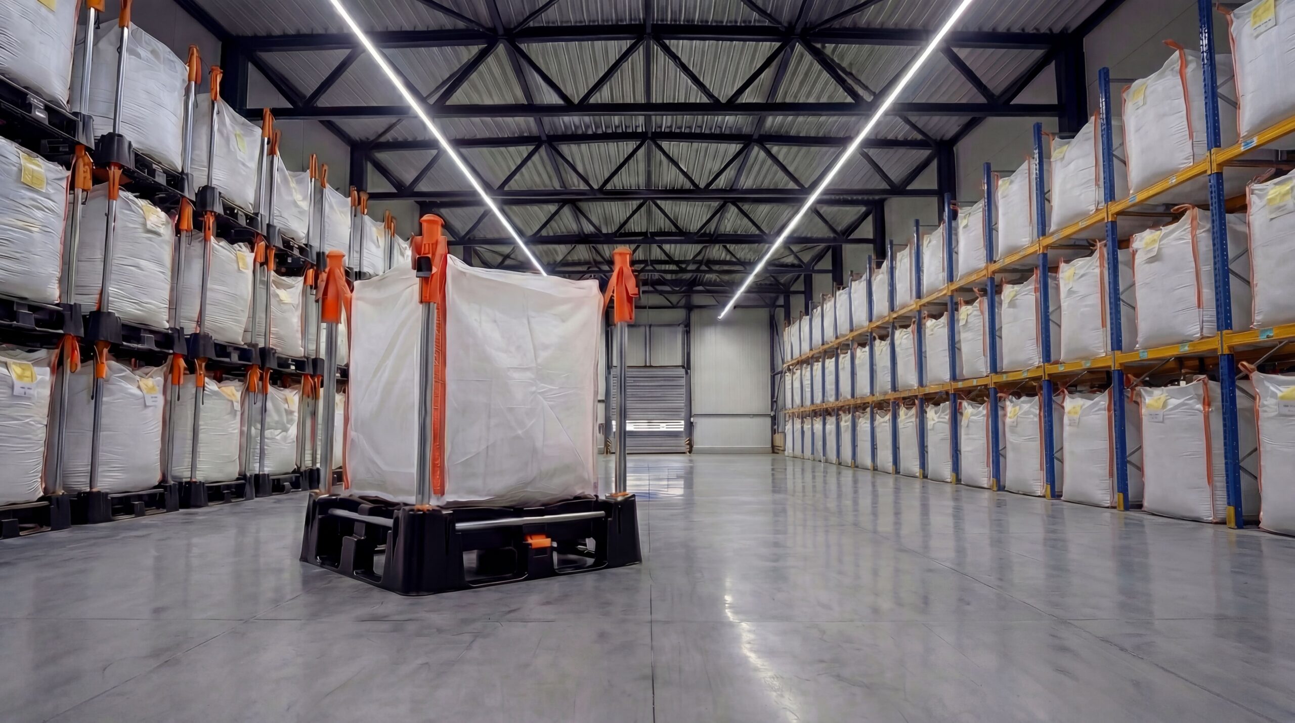 In industrial sectors that use large volumes of bulk materials, it is important to be able to store these in an efficient way. In addition, it is helpful if bulk material can be transported to production. Big bags, also known as FIBCs (Flexible Intermediate Bulk Containers), are a widely used packaging solution for these materials. That is because they are cheap, durable, and easy to use. The use of a specialist big bag handling system like the Indus Neva offers many advantages over traditional pallet racking. Especially in terms of use of space, safety, and supplementary functions in production. In this article, we discuss the advantages of the unique big bag system over traditional pallet racking.