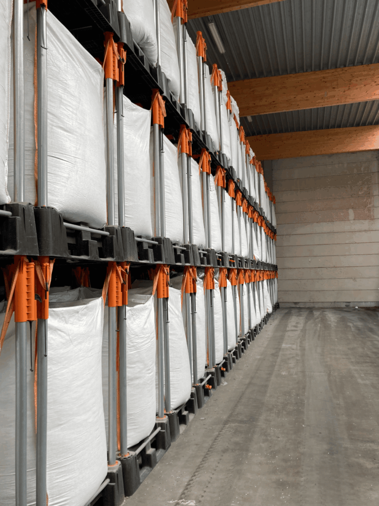 Ontdek hoe de NEVA Big bag drager een unieke en bewezen manier van werken is voor het veilig, slim en duurzaam opslaan van big bags tot 7 meter.